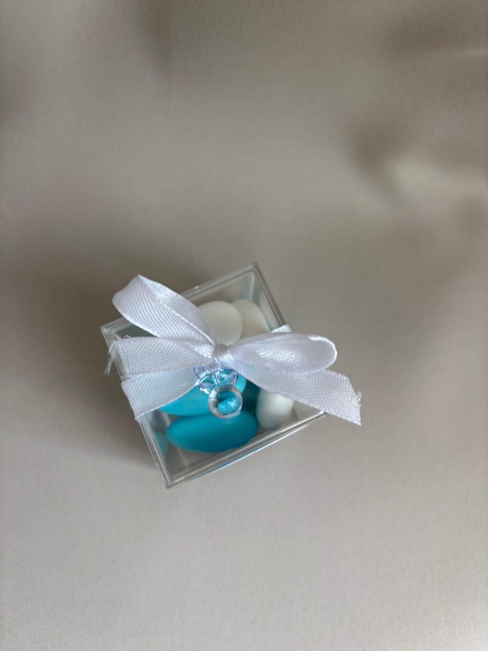 Schattige transparante doosjes gevuld met heerlijke amandelbonen