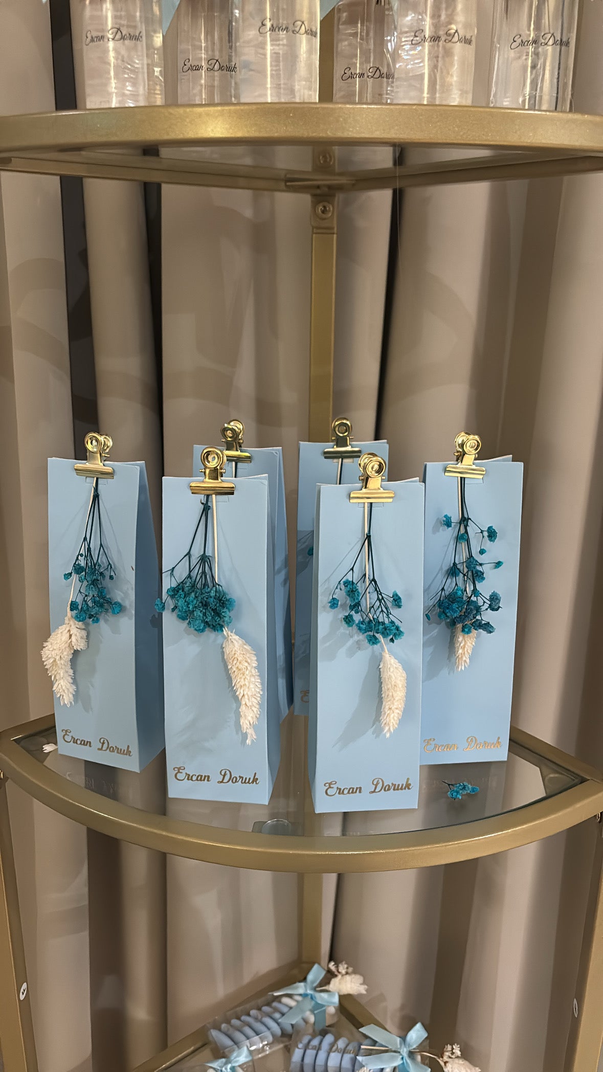 Een elegant en stijlvol hoog doosje, perfect om je babyshower nét dat beetje extra te geven. Gepersonaliseerd met naam en datum en afgewerkt met een mooie gouden clip. Ideaal om te vullen met chocolade, snoepjes of een klein bedankje voor je gasten.