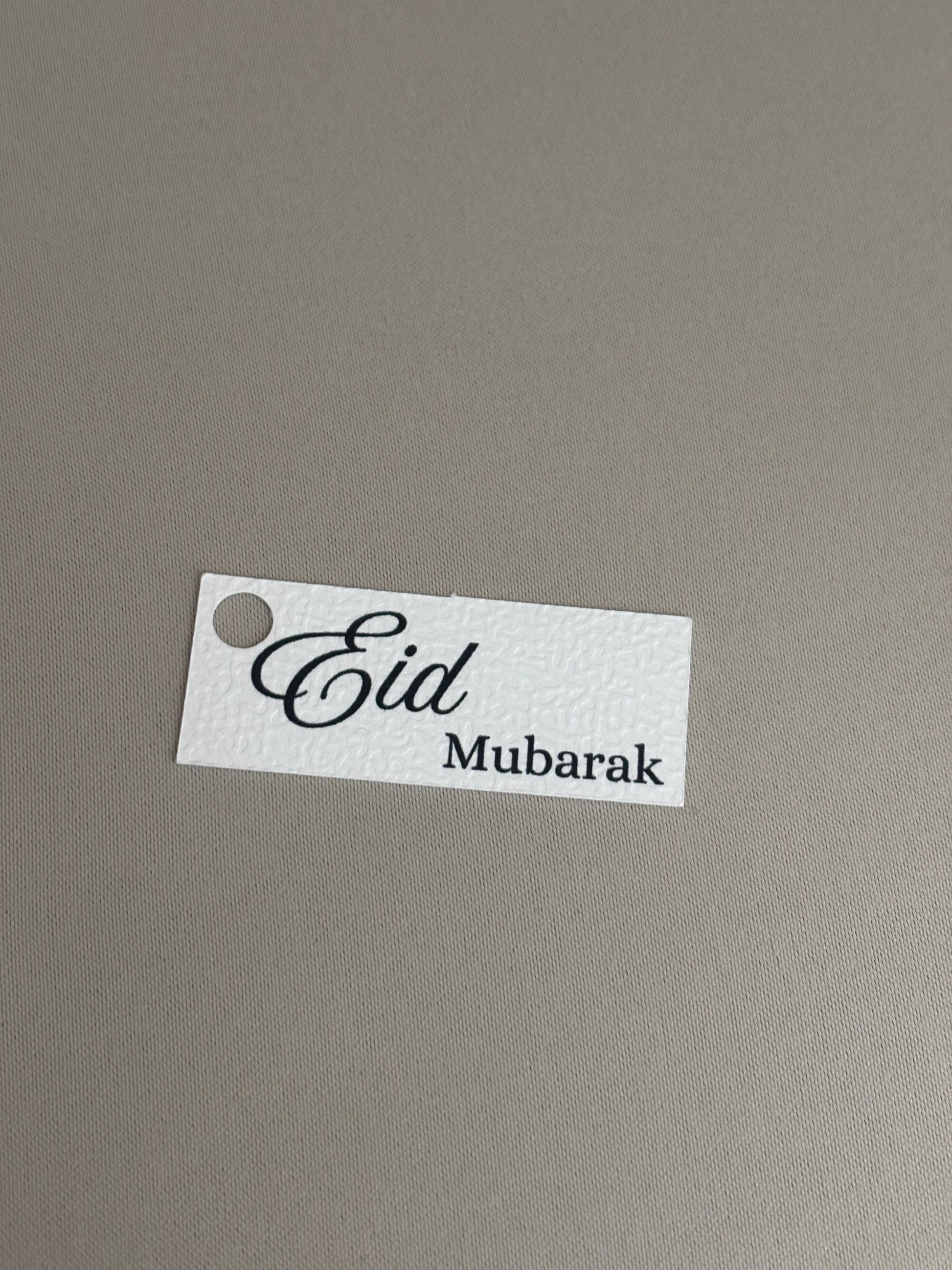 Eid Mubarak Hanglabels gemaakt van stevig, gestructureerd papier met stijlvolle opdruk.