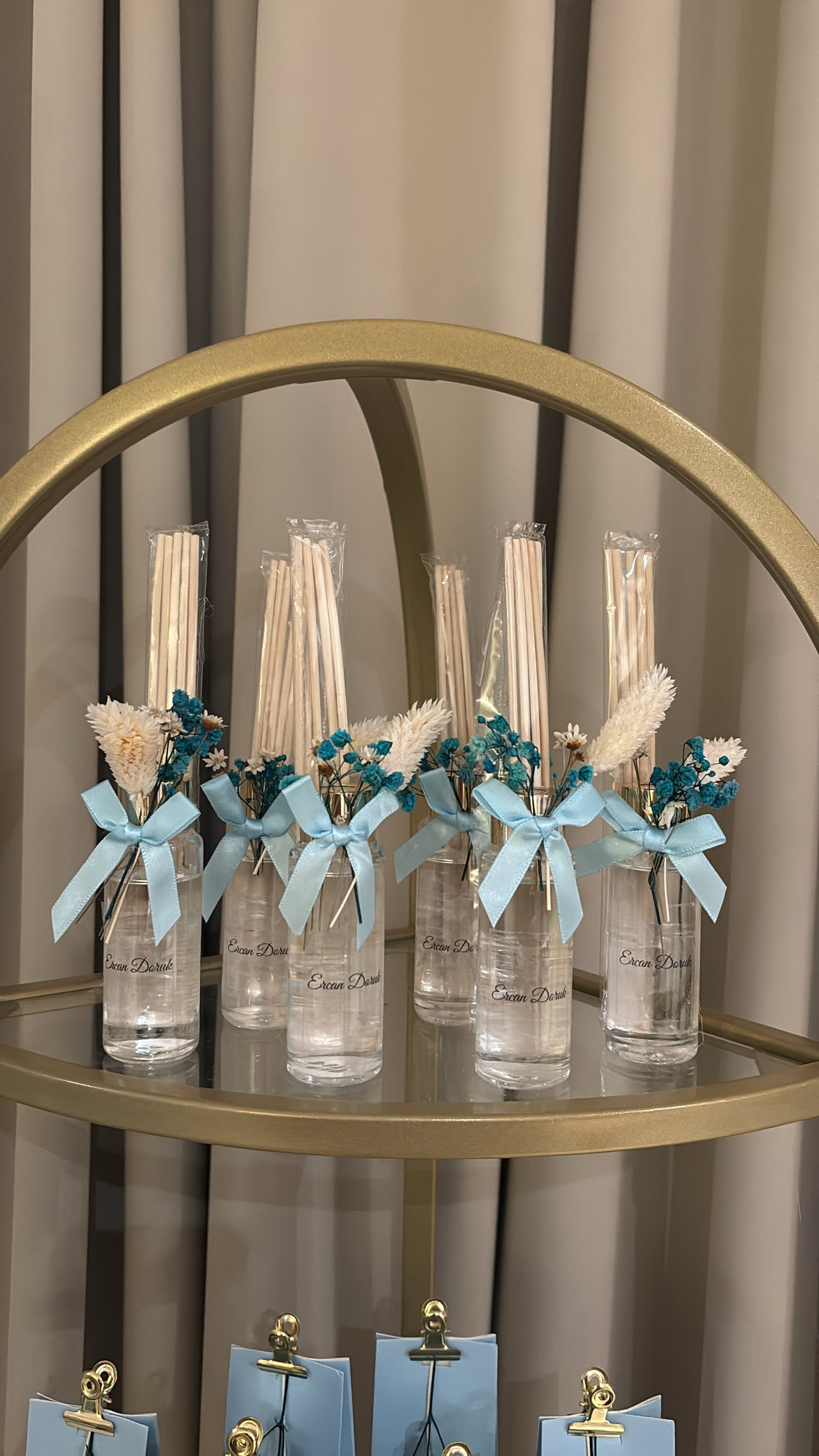 Voeg een vleugje luxe toe aan elk moment met onze elegante geurverspreider. Afgewerkt met een subtiele droogbloem, een sierlijk strikje en een gepersonaliseerde sticker – perfect als bedankje bij een geboorte, babyshower, trouwen of andere bijzondere gelegenheid.