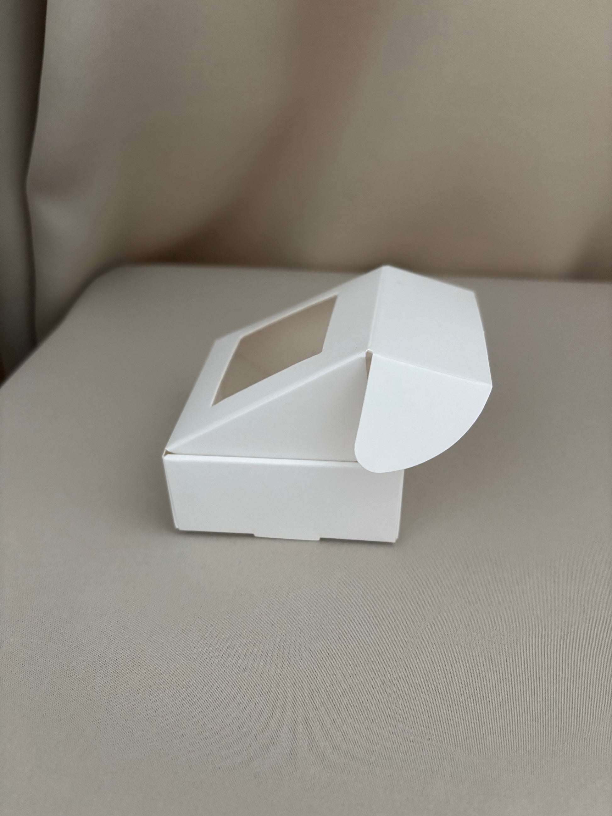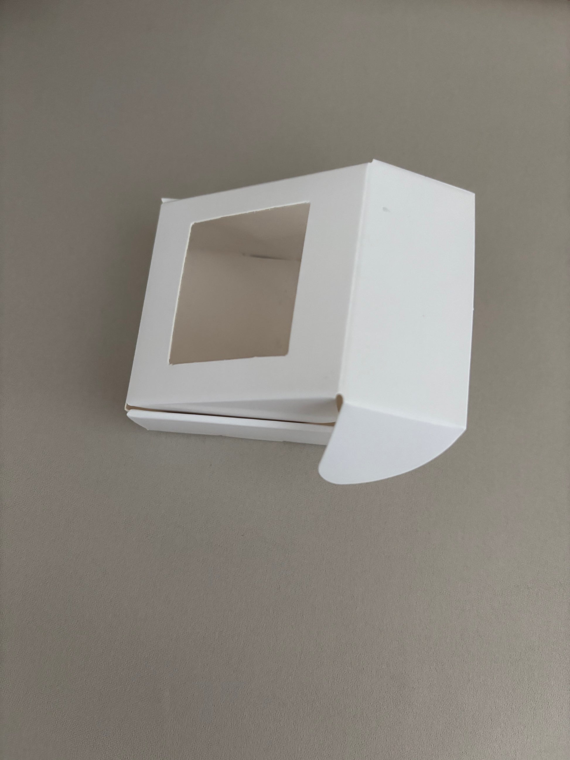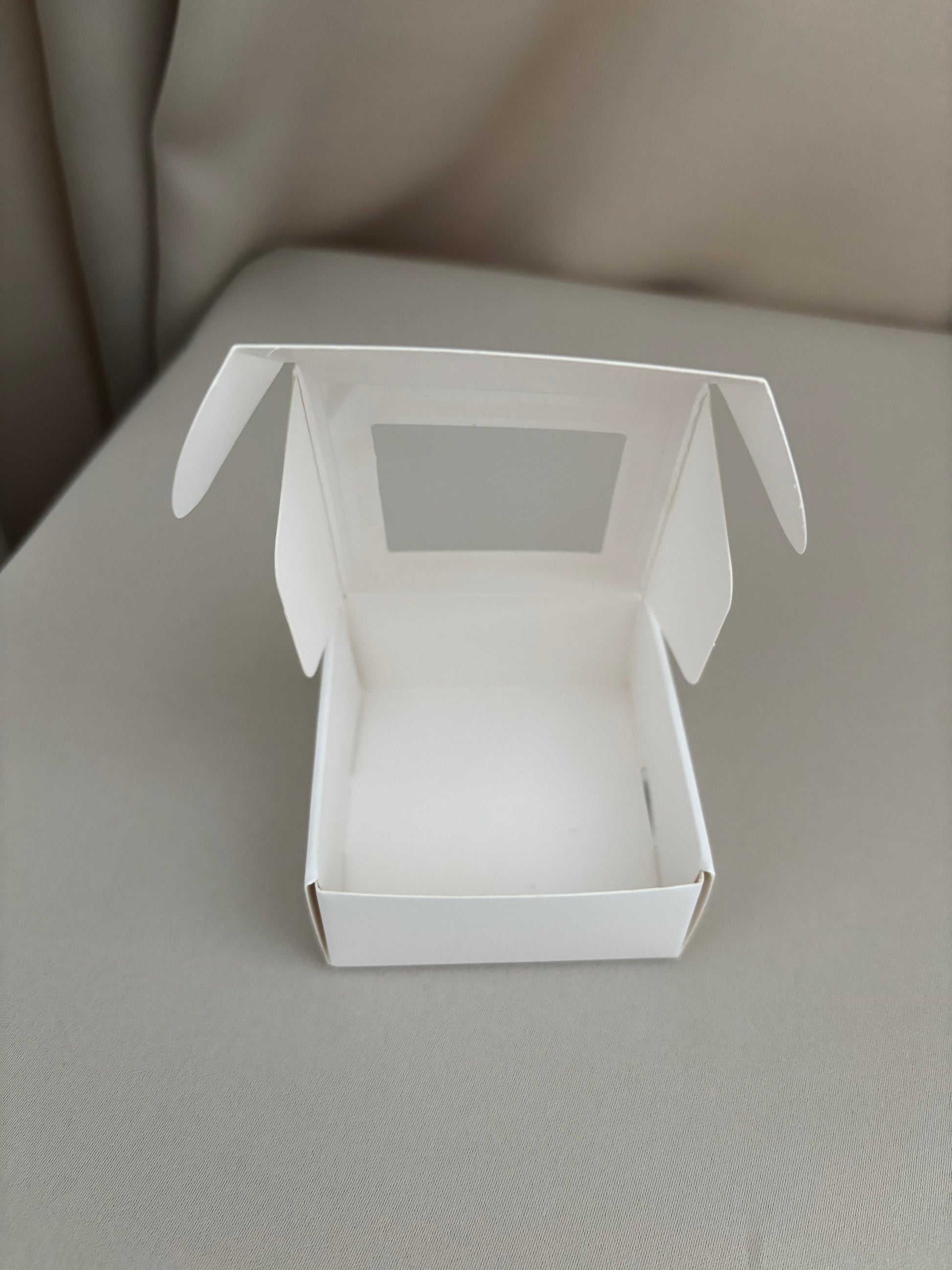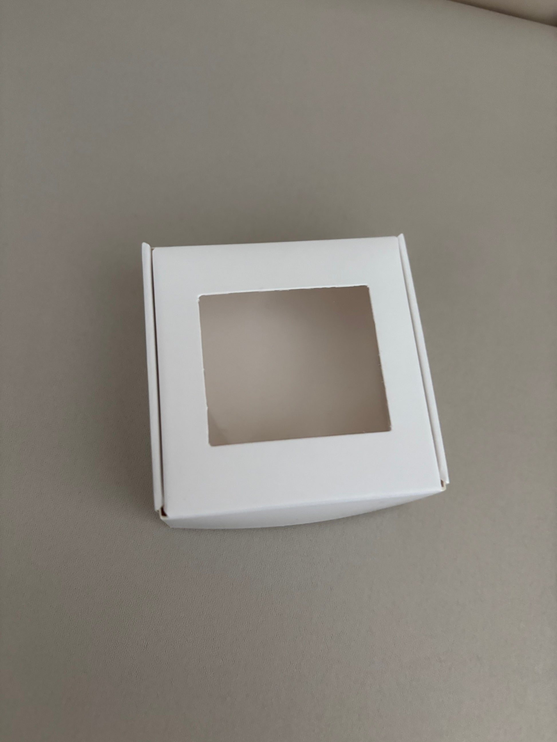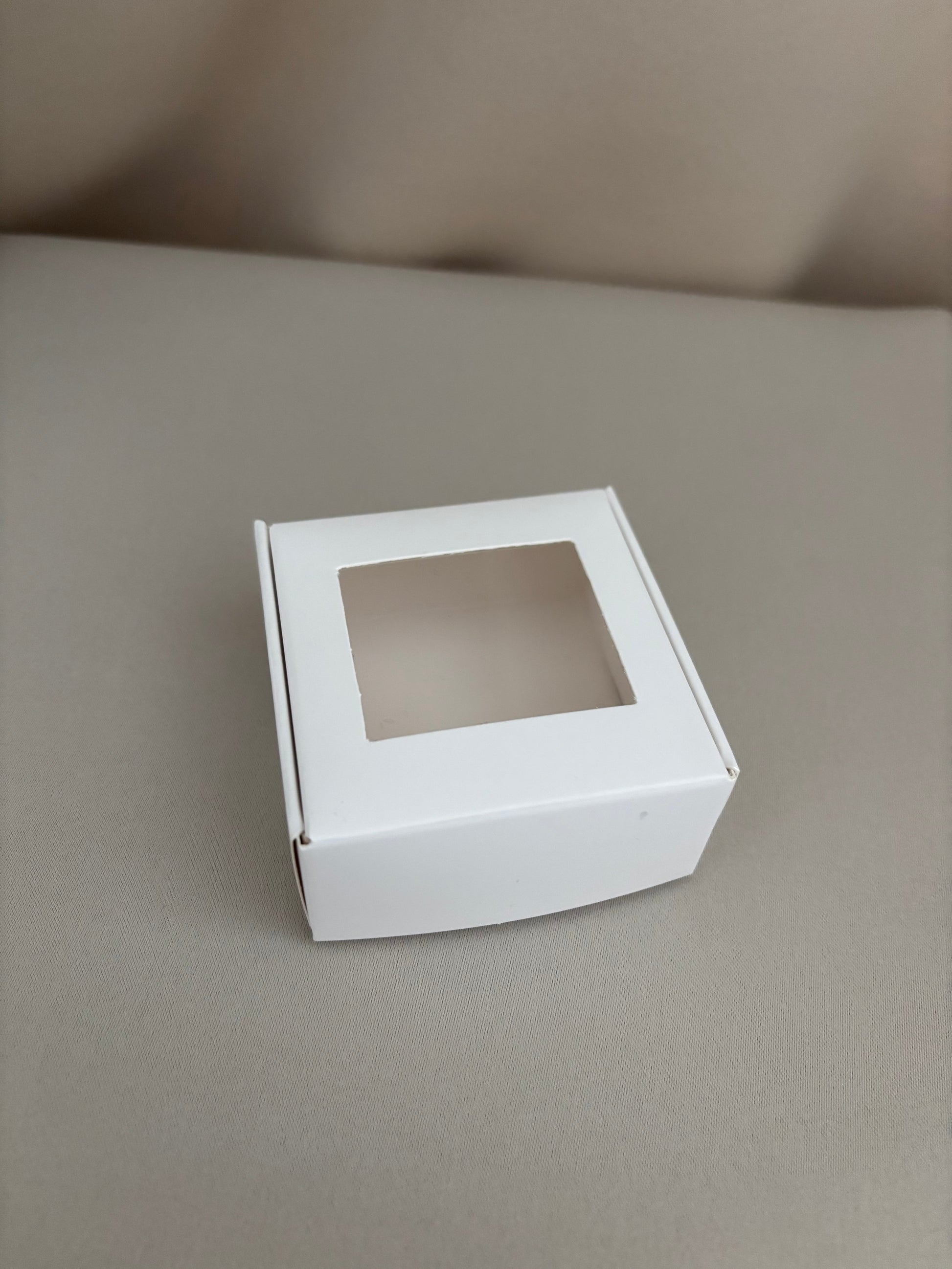 Stijlvol en compact wit cadeaudoosje, gemaakt van stevig karton en voorzien van een transparant venster in de bovenzijde. Dankzij het venster is de inhoud mooi zichtbaar, wat dit doosje ideaal maakt voor het presenteren van kleine cadeaus, sieraden, bedankjes, zeepjes of zoetigheden. Het tijdloze en neutrale ontwerp maakt het geschikt voor iedere gelegenheid, zoals bruiloften, babyshowers, verjaardagen en feestdagen.