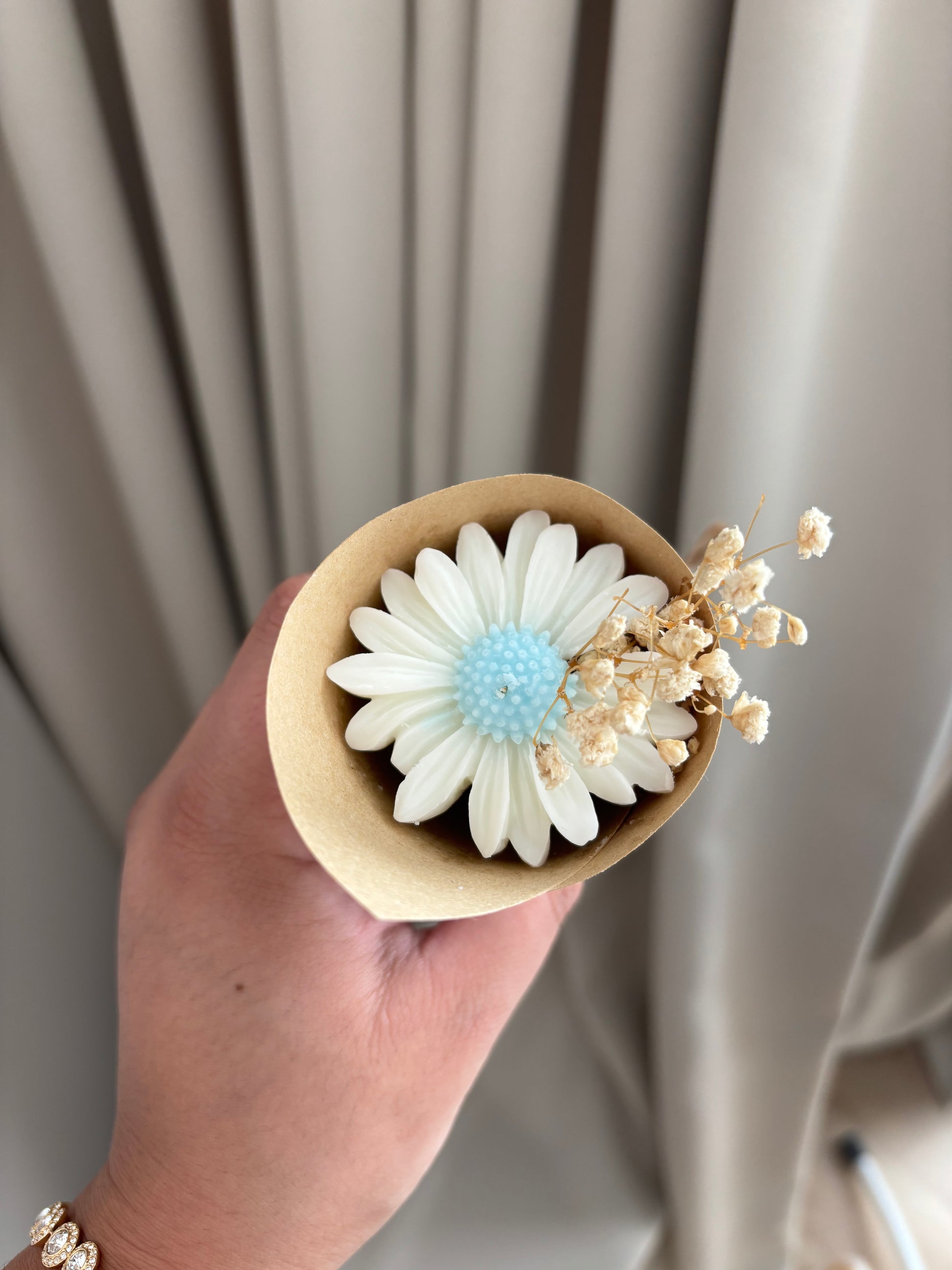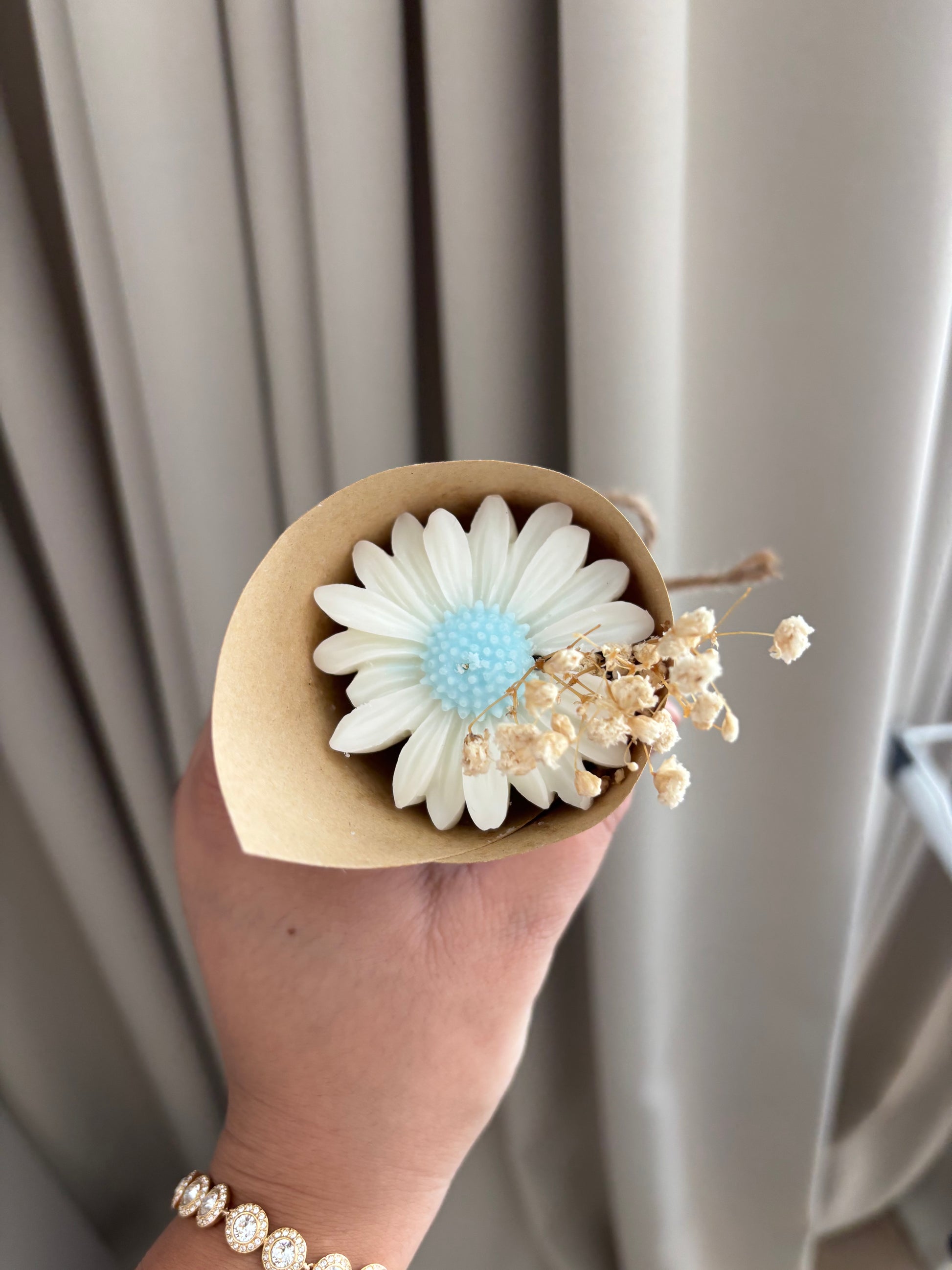 Laat je betoveren door dit schattige boeketje met madeliefje maar dan van kaars!