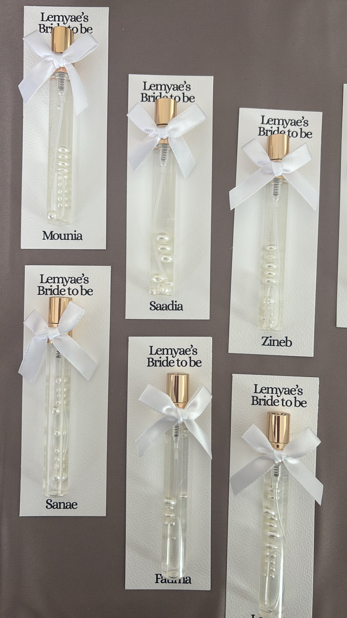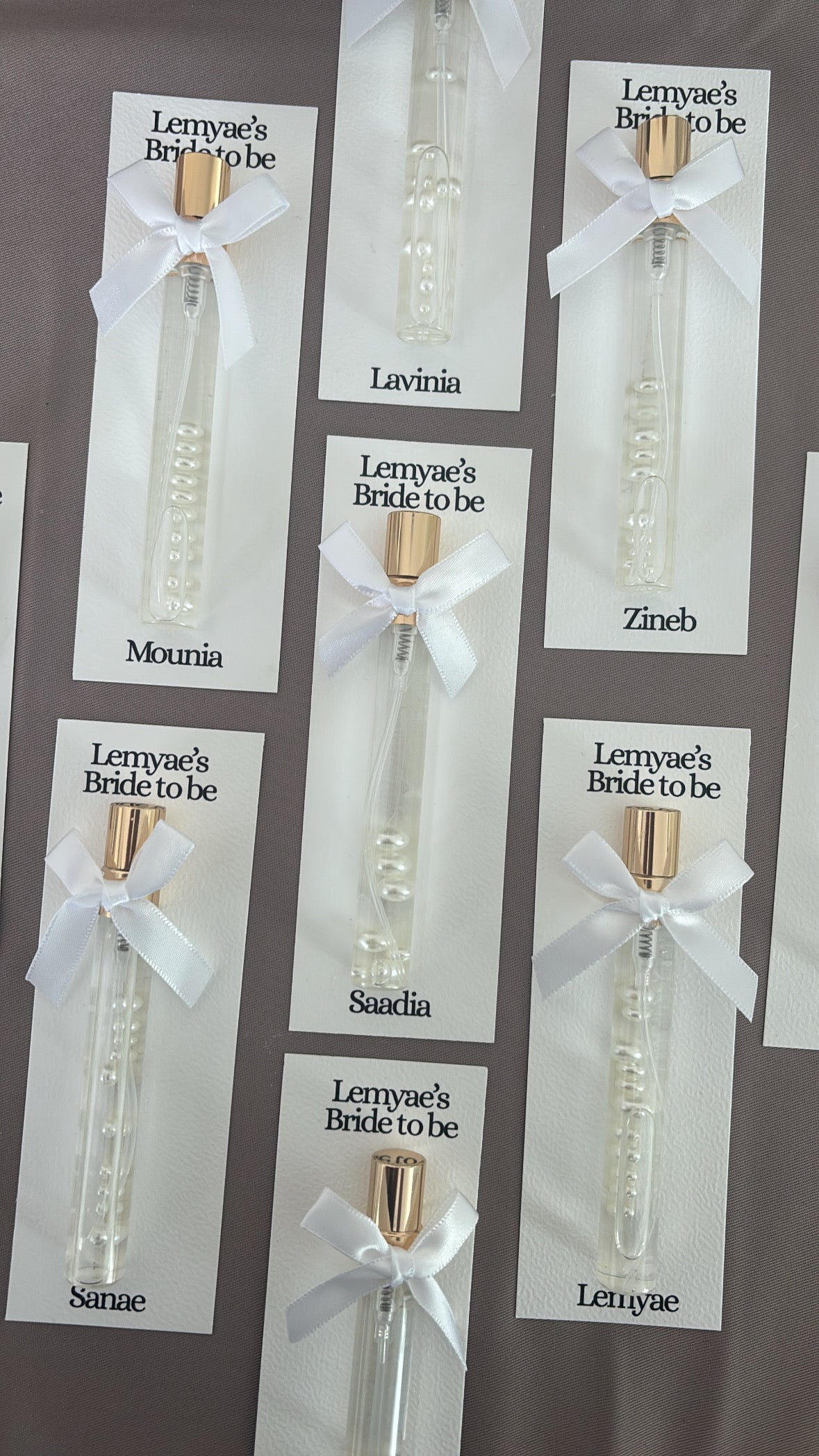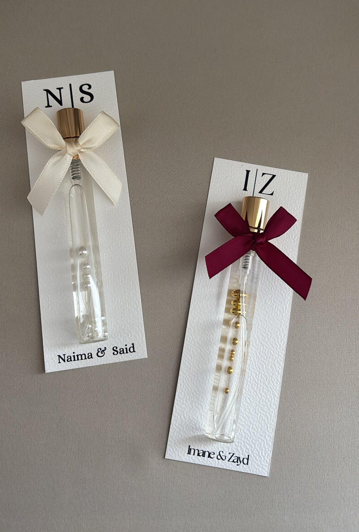 Maak je speciale dag onvergetelijk met deze verfijnde parfumflesjes. Dit is niet zomaar een bedankje; het is een stijlvol gebaar van waardering dat perfect past bij een chic evenement. Elk flesje is zorgvuldig afgewerkt met oog voor detail en volledig te personaliseren naar jouw smaak.