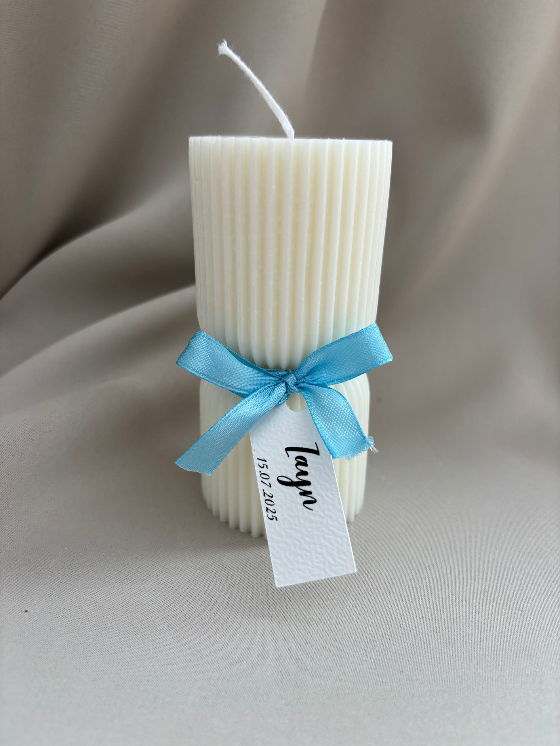 Handgemaakte pilaarkaars met naam & datum – perfect als babyshower bedankje
