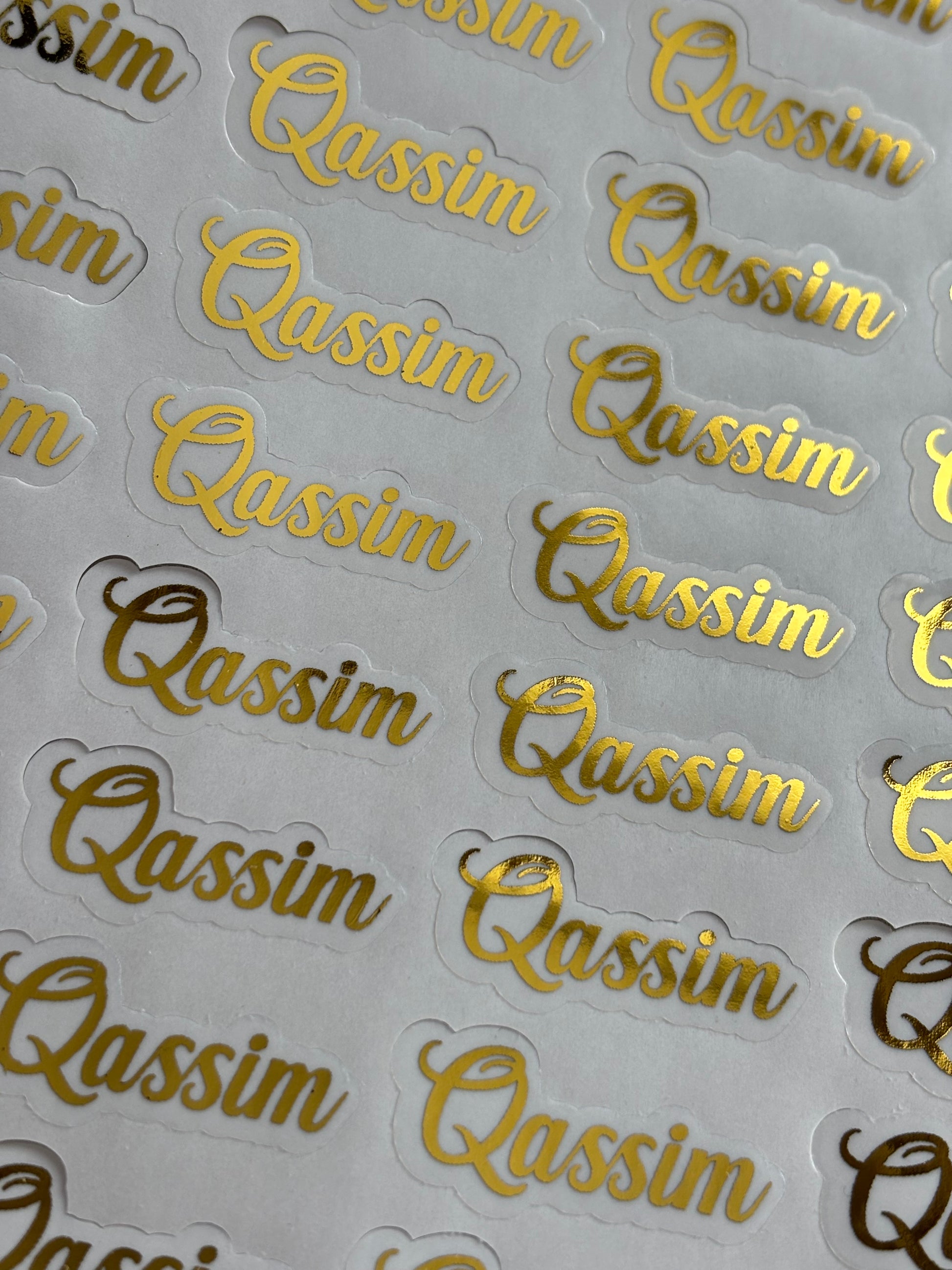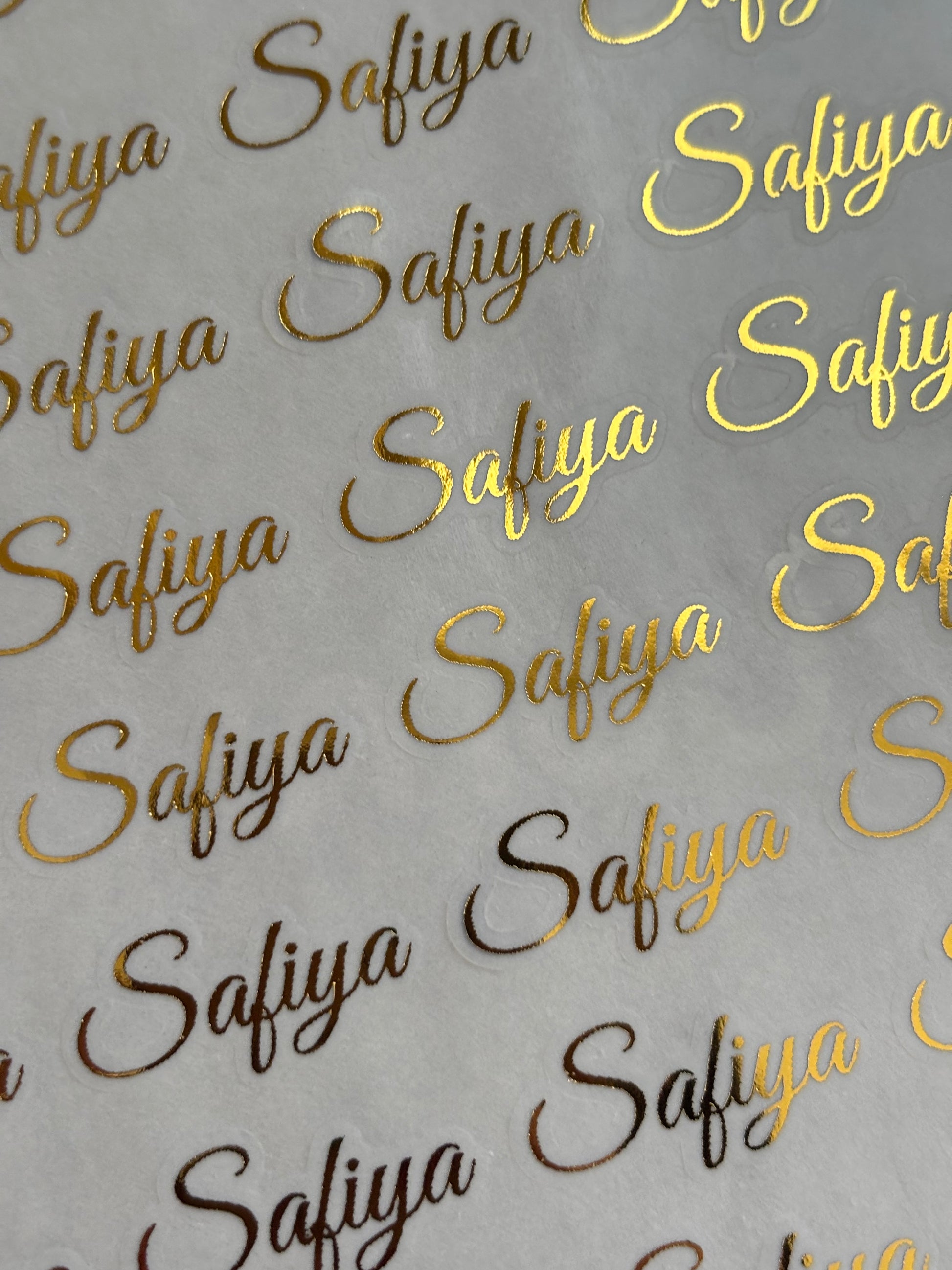 Geef jouw bedankjes of traktaties een elegante en luxe uitstraling met deze semi-transparante stickers. De glanzende folie in goud of zilver maakt het ontwerp helemaal af – perfect voor een geboorte, babyshower, bruiloft, verloving of tahara.