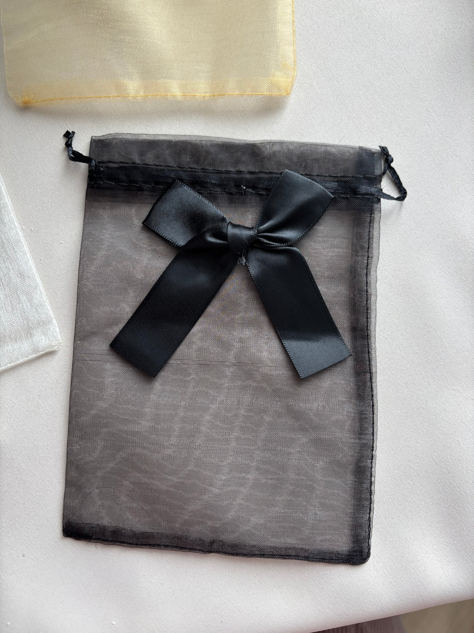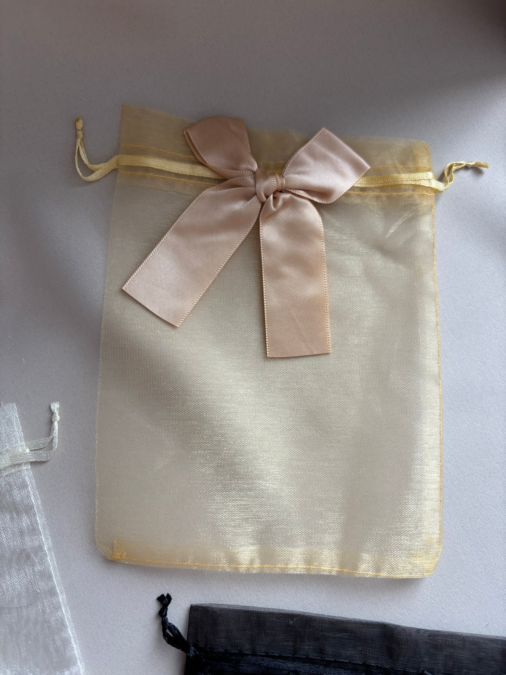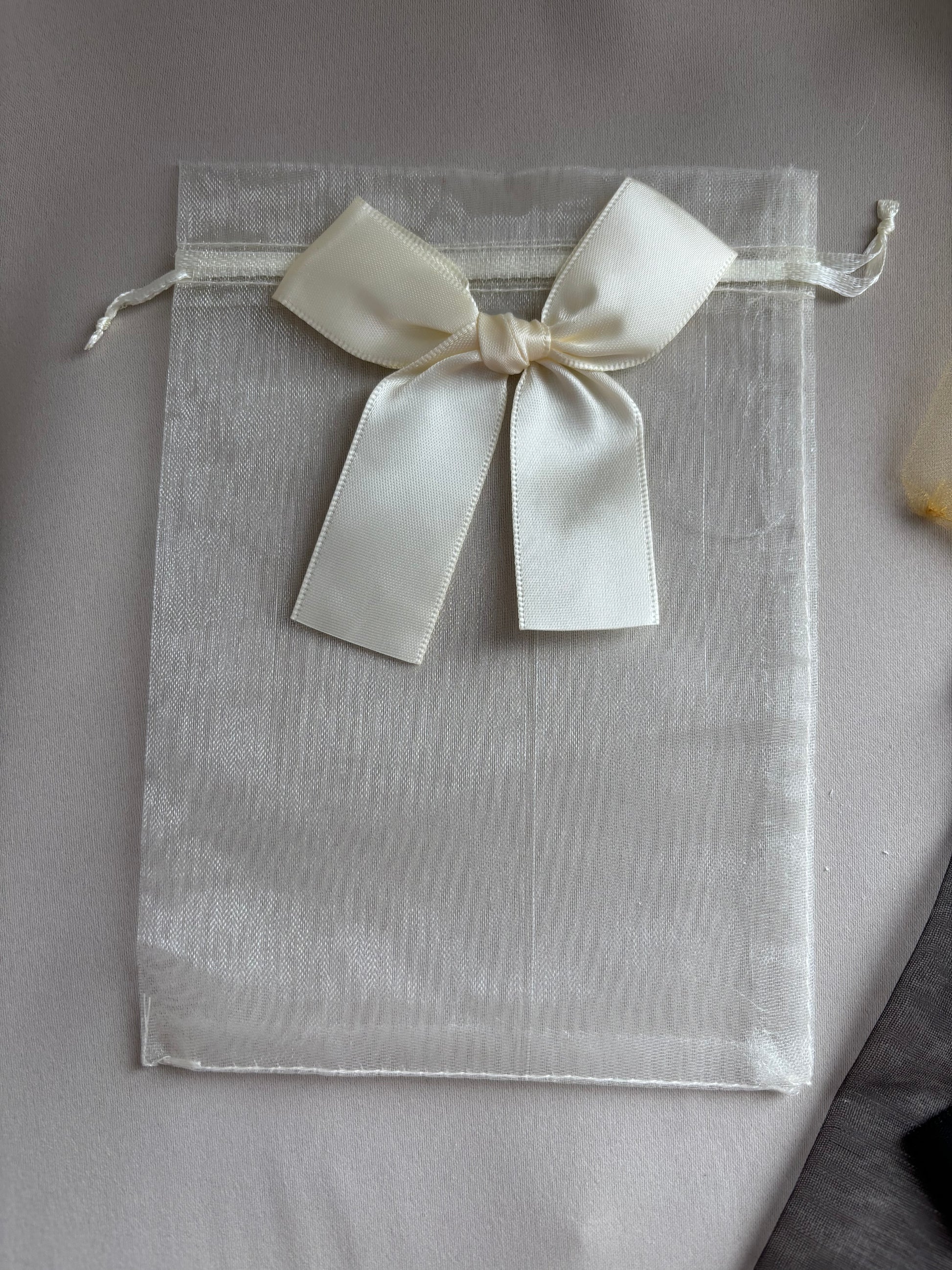 Zakje met strik. Vul deze zakjes met bijvoorbeeld dadels of snoep.
